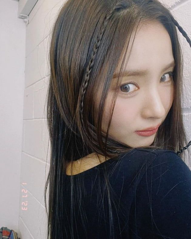 신세경은 머리를 땋고 렌즈를 착용한 상태로 카메라를 응시하고 있다. 그는 청순한 매력을 자랑해 시선을 끈다.