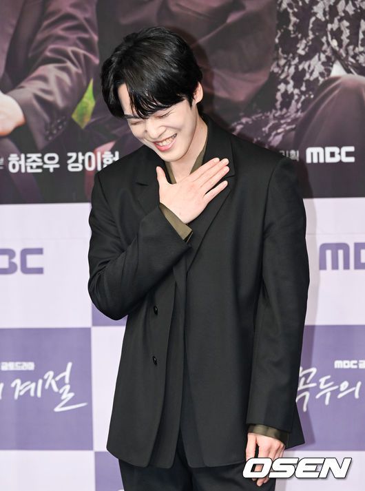 [OSEN=박준형 기자] 27일 오후 서울 상암 MBC 골든마우스홀에서 드라마 ‘꼭두의 계절’ 제작발표회가 진행됐다. 드라마 ‘꼭두의 계절'은 99년마다 인간에게 천벌을 내리러 이승에 내려오는 사신(死神) '꼭두'(김정현 분)가 신비한 능력을 갖춘 왕진의사 '한계절'(임수향 분)을 만나 벌이는 판타지 로맨스다. 2년만에 안방극 복귀한 김정현이 각오를 밝힌뒤 어색해하고 있다. 2023.01.27 / soul1014@osen.co.kr |