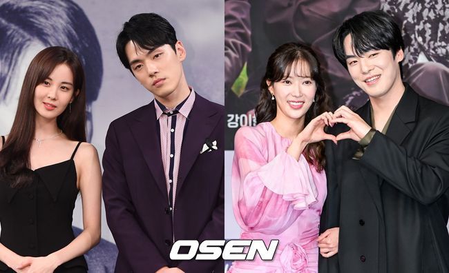 [OSEN=박준형 기자] 27일 오후 서울 상암 MBC 골든마우스홀에서 드라마 ‘꼭두의 계절’ 제작발표회가 진행됐다. 드라마 ‘꼭두의 계절'은 99년마다 인간에게 천벌을 내리러 이승에 내려오는 사신(死神) '꼭두'(김정현 분)가 신비한 능력을 갖춘 왕진의사 '한계절'(임수향 분)을 만나 벌이는 판타지 로맨스다. 배우 임수향과 김정현이 포즈를 취하고 있다. 2023.01.27 / soul1014@osen.co.kr |