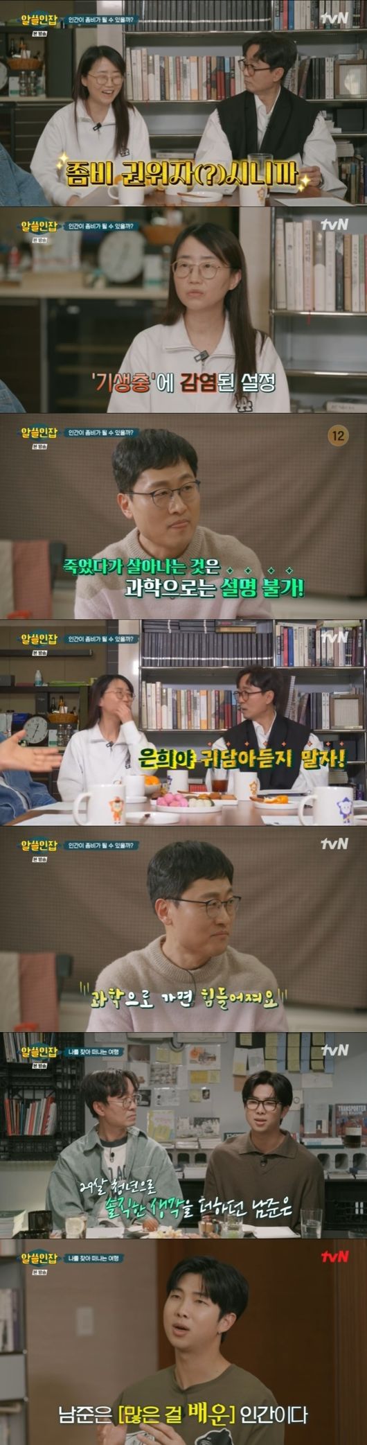 김상욱 교수는 "좀비가 죽었다 살아나는 건 과학적으로 불가능하고 설명되지 않는다"며 "좀비도 움직이는 동물이라고 보면 움직이기 위해선 에너지가 필요하다"며 디테일한 과학으로 설명했다.