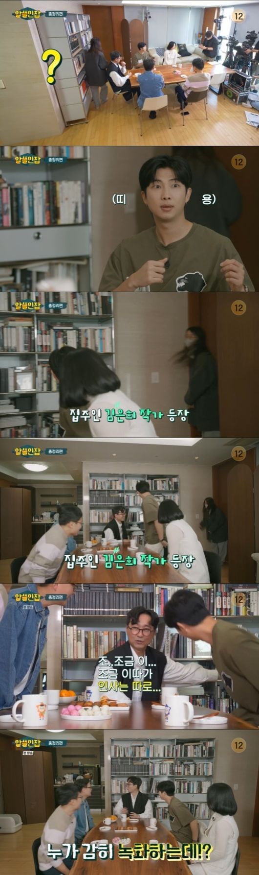녹화 도중 집주인 김은희 작가가 카메라 앞에 나타나 거실을 가로 질러서 지나갔다. 이를 본 RM은 깜짝 놀라 동공 지진을 일으켰다. 당황한 장항준 감독은 "조..조금..조금 이따가 인사는 따로"라며 나중에 등장하기로 했고, "누가 감히 녹화하는데"라고 말해 웃음을 자아냈다.