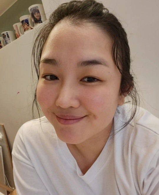 사진 속 정미애는 화장기 없는 민낯으로 수수한 분위기를 자아낸다. 정미애는 밝은 미소를 보이며 팬들을 안심시키고 있다.