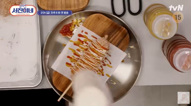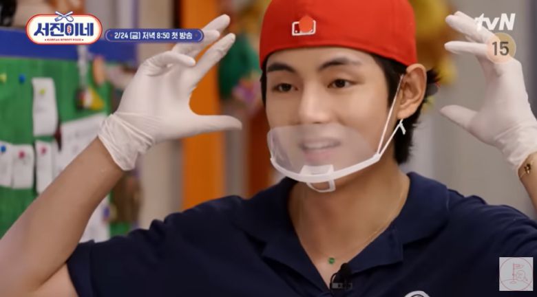 '서진이네'의 메뉴도 대략 공개됐다. 한국식 프라이드 치킨, 핫도그, 떡볶이 등 분식집 인기메뉴가 고스란히 담겼다. 몰려드는 주문에 넋이 나간 뷔는 양손을 들고 머리를 저었다.