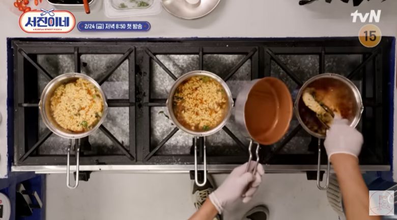백조의 발처럼 분주한 주방의 모습도 공개됐다. 화구 3개를 꽉 채워 라면을 끓이고, 한쪽에선 깻잎과 고기를 넣은 김밥을 말고 있다. 그 와중에도 쉴새없이 "주문"이라는 외침이 들어왔다.
