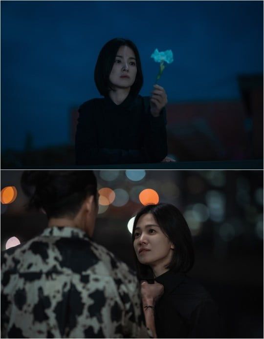 송혜교는 "항상 실제 나이와 비슷한 역할을 맡아왔다. 동은도 30대 후반이다. 늦게 대학에 입학한 자신보다 학번이 높고 바둑을 알려주는 주여정(이도현 분)을 '선배'라고 부르지만 말이다. 조력자가 돼줄 사람 앞에서 온몸의 상처를 드러내던 장면도 기억에 남는다"라는 질문을 받았다.