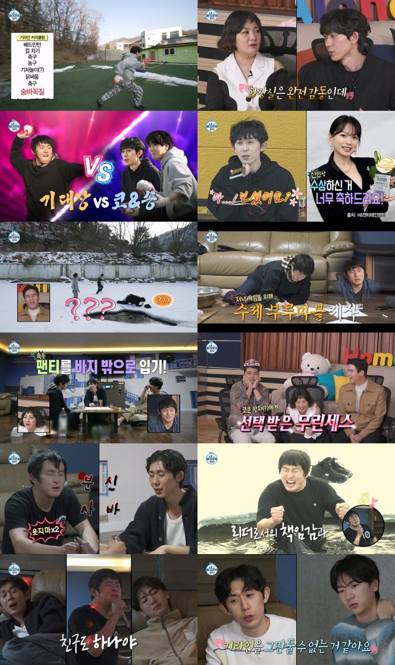 기안84는 "다 같이 힘든 일을 이겨냈을 때 교감이 생긴다"며 계곡물 입수 커리큘럼으로 동생들은 이끌었다. 기안84는 기 대장의 자격을 증명하려는 듯 계곡물에 자신 입수했지만 긴급 탈출 후 눈 위를 광속 질주해 폭소를 자아냈다. 이주승은 아무도 지켜보지 않는 상황에서 혼자 입수에 성공했다.
