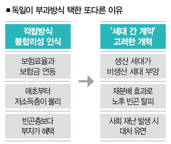 "당연히 있겠죠. 하지만 대다수 독일 국민의 생각은 조금 달랐던 것 같습니다. 그들은 '애초에 보험료를 적게 낼 수밖에 없었던 이들이 과연 그들 스스로의 잘못으로 빈곤해져서 보험료를 적게 낸 것일까'에 초점을 맞췄습니다. 근본적인 물음을 던진 건데, 결론은 '그렇지 않다'였습니다. 그래서 재분배가 실현되지 않는 연금제도는 정의롭지 못하다는 생각을 하게 됐고, '세대 간 계약'을 기본으로 한 부과방식을 결정하게 된 겁니다."