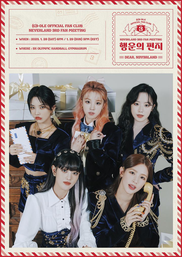 (여자)아이들은 '네버랜드 3RD 팬미팅 [행운의 편지]'를 통해 28일 오후 6시와 29일 오후 5시, 서울 송파구 올림픽공원 SK올림픽핸드볼경기장에서 양일간 팬들을 만난다.