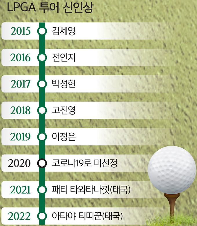 한국 선수들은 지난해 4승을 합작하는 데 그쳤다. 이는 2011년 3승 이후 한 시즌에 한국 선수들이 수확한 가장 적은 우승 기록이다. 한국 선수들은 2013∼2019년에 거의 매년 10승 이상을 합작했다. 특히 2015년, 2017년, 2019년은 15승까지 달성하며 LPGA 투어를 장악했다. 하지만 신종 코로나바이러스 감염증(코로나19) 확산 이후 눈에 띄게 우승이 줄어 2020년과 2021년 각 7승에 그쳤고 지난해는 4승으로 쪼그라들었다. 확연한 내리막세다.