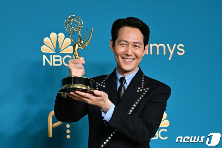 지난해 9월 12일(현지시간) 미국 캘리포니아주 로스앤젤레스 마이크로소프트 극장에서 열린 제74회 프라임타임 에미상 시상식에서 넷플릭스 오리지널 시리즈 '오징어 게임'으로 아시아 국적 배우 최초로 남우 주연상을 받은 이정재가 활짝 웃고 있다. ⓒ AFP=뉴스1 ⓒ News1