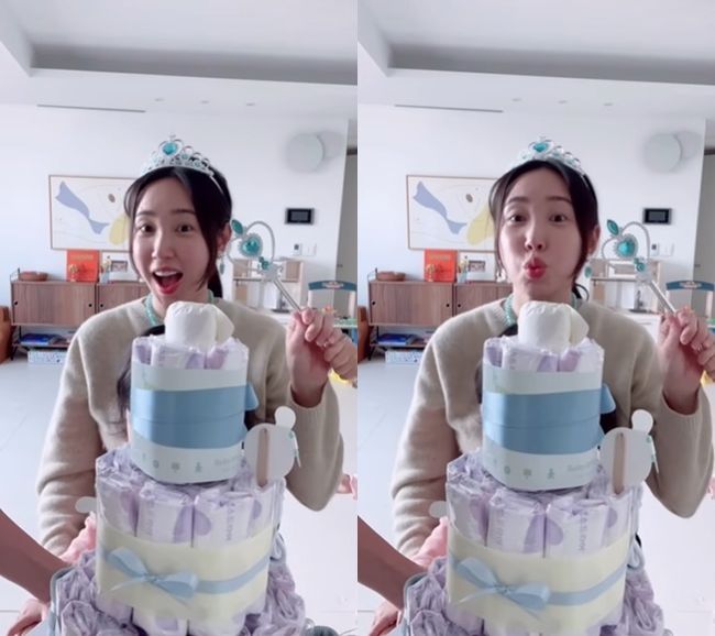 '둘째 임신' 최희, 공주 왕관+기저귀케이크 선물 받고 베이비샤워