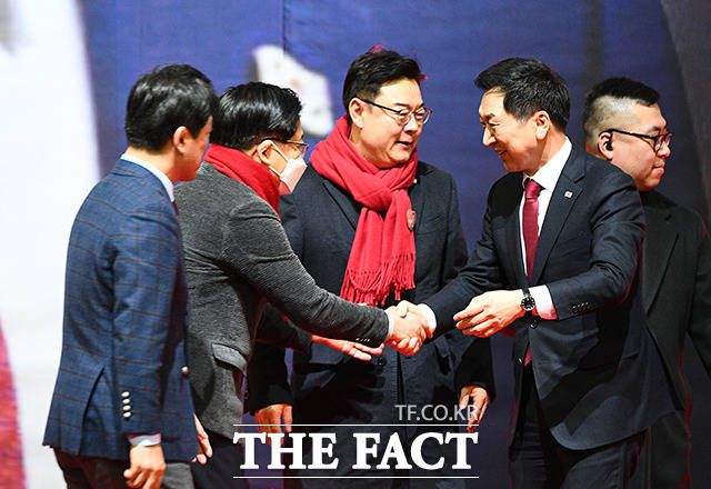 [더팩트ㅣ부천=이동률 기자] 국민의힘 당권주자인 김기현 의원이 28일 오후 경기도부천시 중동 부천체육관에서 열린 '이기는 김기현 캠프 수도권 통합 출정식'에 참석해 승리를 다짐하고 있다.