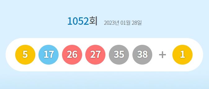 28일 진행된 제1052회 동행복권 '로또' 추첨 결과 5, 27, 17, 26, 38, 35번이 1등 당첨번호로 뽑혔다. 2등 보너스 번호는 1번이다.