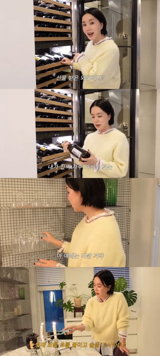 엄정화가 와인과 잔을 소개했다.