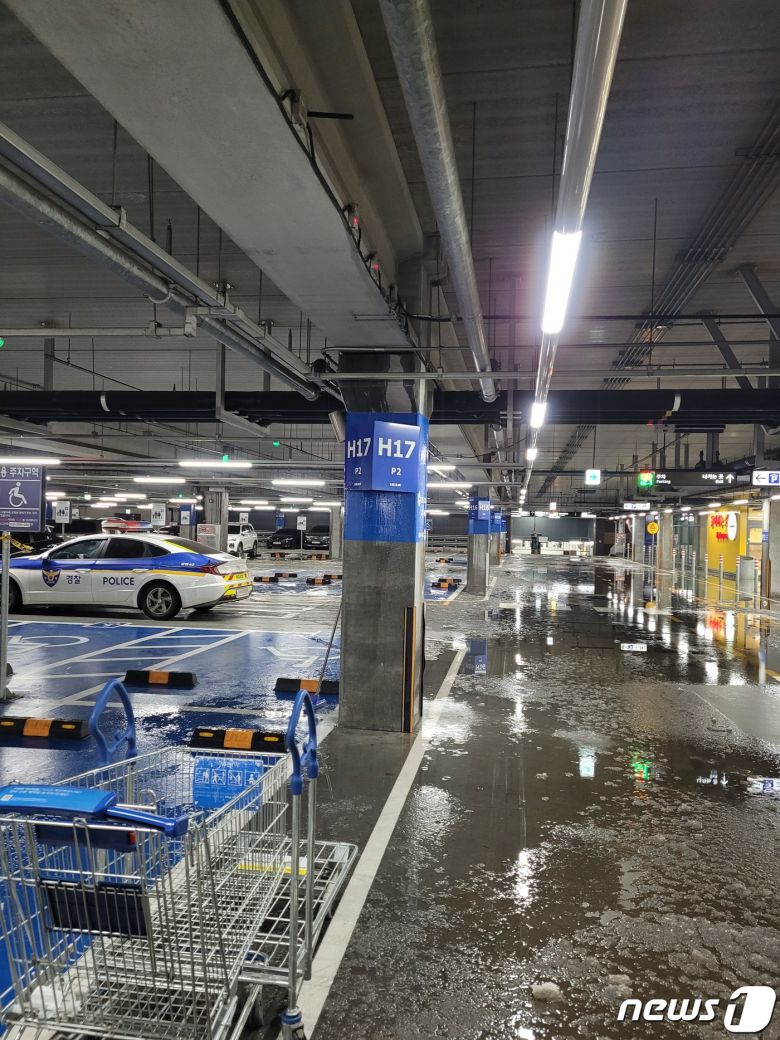 옥내소화전 부근 천장과 바닥, 주차장 등은 누수된 물이 쏟아지고 고이면서 혼란을 가중했다. 엘리베이터 멈춤 사고 역시 누수에 의한 것으로 파악됐다.