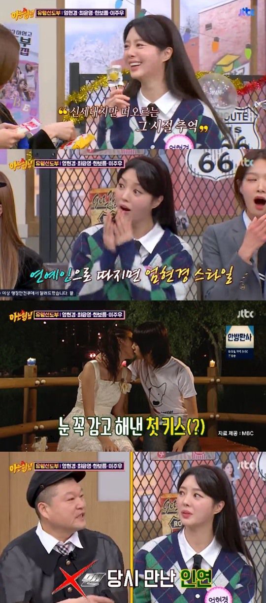 당황한 김희철은 "너 나랑 키스도 했잖냐"고 했다. 이수근은 "그렇게 분위기가 안 좋은데 키스는 왜 한 거냐"고 물었고 엄현경은 "키스신이 있었으니까 했다"며 어이없어 했다. 이어 김희철은 "당시 NG가 많이 났는데 원래는 가짜로 하는데 감독님이 보시더니 티가 난다고 하더라"고 말했다. 이에 엄현경은 "티가 나고 안 나고를 떠나서 키스를 못했다"며 "키스를 안 해본 사람 같았고 내가 첫 키스 아닌가 싶을 정도였다"고 했다. 엄현경은 당시 김희철이 "눈을 감고 다가왔다"고 덧붙여 웃음을 자아냈다.