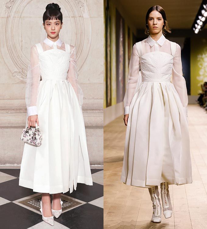 이날 지수가 착용한 의상은 '디올' 2022 F/W 오뜨 꾸뛰르 컬렉션 제품이다.