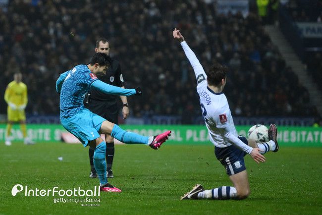 후반 5분 토트넘이 선제골을 작렬했다. 주인공은 손흥민이었다. 빠르게 공격을 전개하려다가 실패한 토트넘은 중원에 있는 손흥민에게 공을 전달했다. 손흥민은 페널티박스 정면에서 환상적인 왼발 슈팅으로 프레스턴의 골망을 흔들었다.