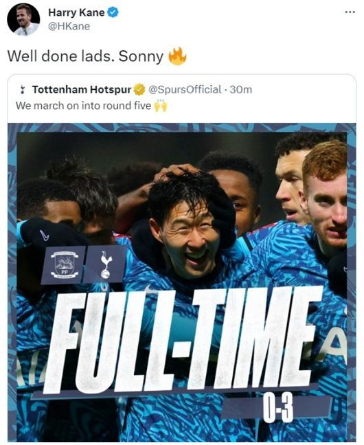 토트넘은 29일(이하 한국시간) 영국 프레스턴 딥데일 스타디움에서 펼쳐진 2022-2023 FA컵 32강서 프레스턴 노스 엔드FC(2부리그)에 3-0 완승을 거뒀다. 토트넘은 16강에 올라섰다.