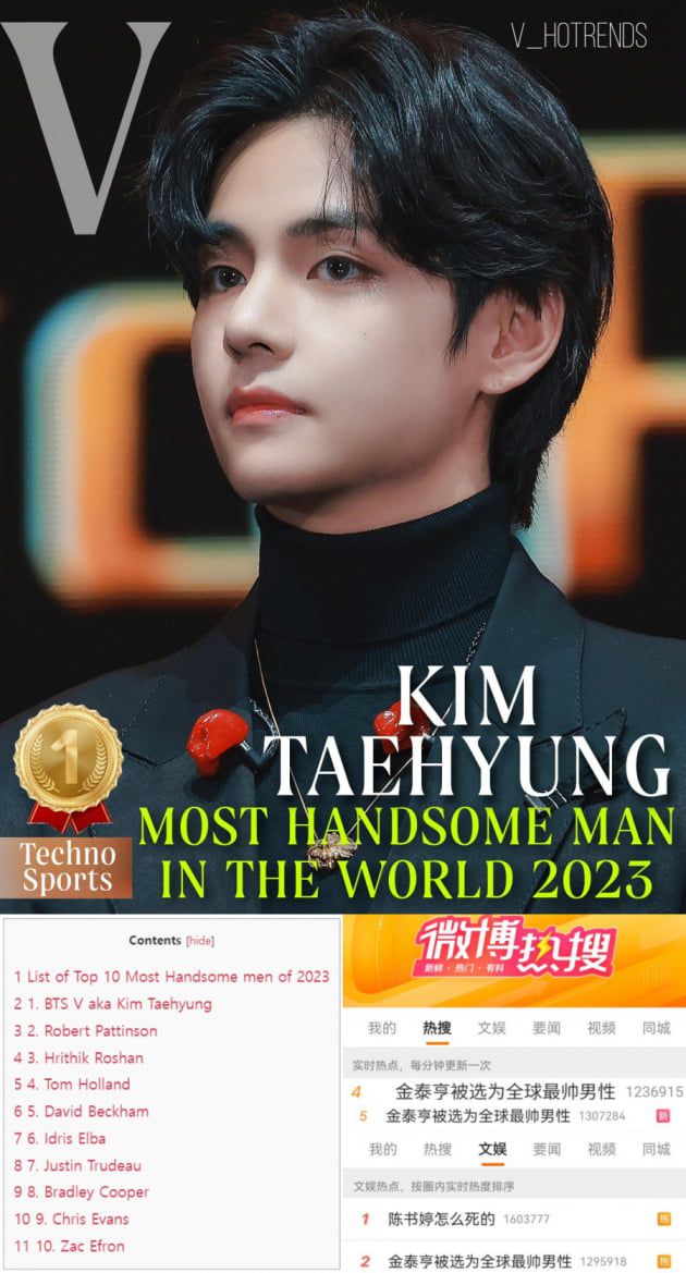 해외 스포츠 전문 미디어 ‘TechnoSports’는 2023년 세계에서 가장 잘생긴 남자 톱10을 발표하며 뷔를 1위로 선정했다.