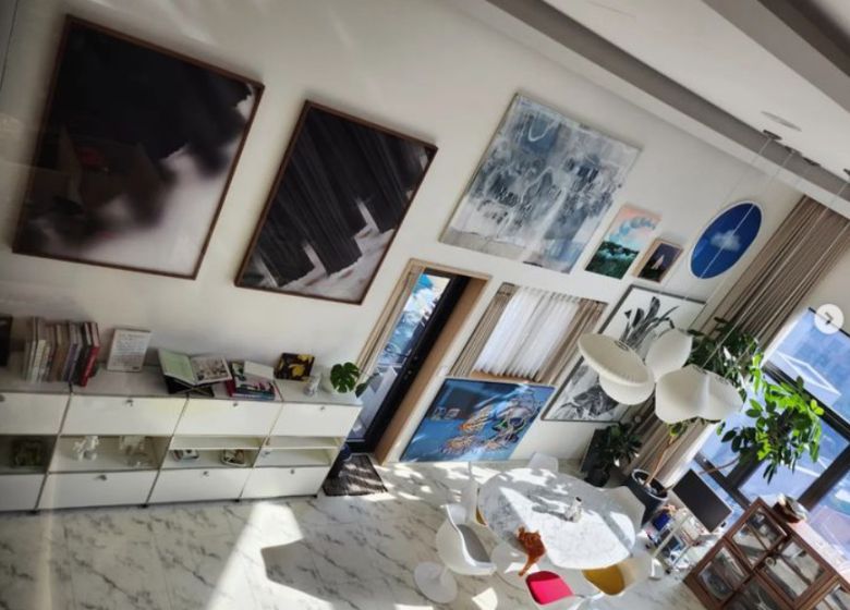 사진 속에는 고급 갤러리를 연상하게 할 정도로 예술 작품들이 이곳 저곳에 걸려있는 소유진의 자택 인테리어가 담겼다.