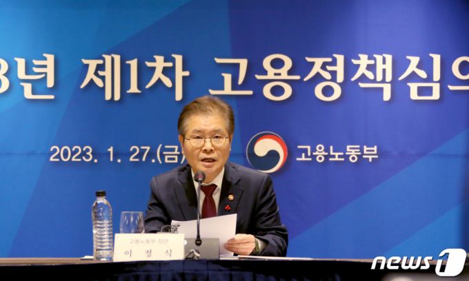 (서울=뉴스1) = 이정식 고용노동부 장관이 27일 서울 중구 로얄호텔에서 열린 2023년 제1차 고용정책심의회를 주재하고 있다. (고용노동부 제공) 2023.1.27/뉴스1  Copyright (C) 뉴스1. All rights reserved. 무단 전재 및 재배포 금지.