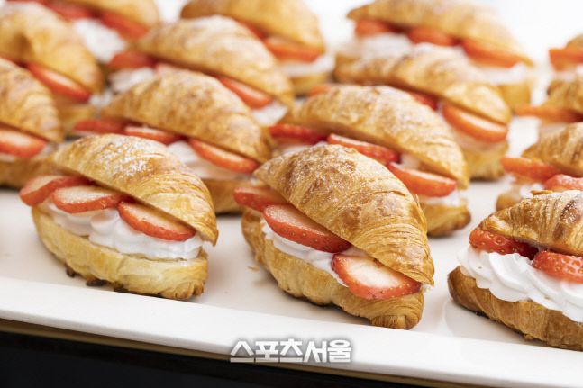 대표 메뉴로는 크랜베리 스콘을 비롯해 리치 브라우니, 딸기 파나코타, 딸기 생크림 케이크, 베리 파블로바, 딸기를 샌딩 한 크루와상 샌드위치, 다크 가나슈 타르트, 생크림과 딸기를 올린 머핀 등이 준비된다.