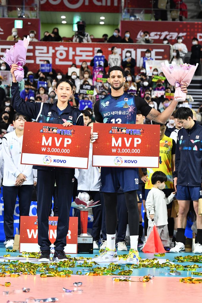 별 중의 별은 김연경(35·흥국생명)과 레오나르도 레이바 마르티네스(33·등록명 레오·OK금융그룹)였다.