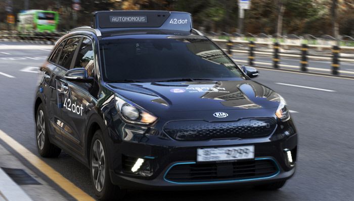 포티투닷의 자율주행 기술을 탑재한 니로EV가 지난해 2월 서울 상암동을 자율주행하고 있다. 포티투닷 제공