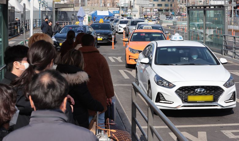 서울 지하철·버스 요금 인상안이 논의되고 있는 가운데 택시 기본요금도 2월 1일부터 기존 3800원에서 4800원으로 1000원 인상될 예정이다. 서울시는 지하철·버스 요금을 300~400원 인상하기 위해 공청회, 물가대책위원회 심의 등 절차도 진행 중이다. 사진은 2023년 1월 29일 오후 서울역 앞에서 택시를 기다리는 승객들/연합뉴스