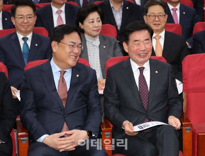 [이데일리 방인권 기자] 김진표 국회의장(오른쪽)과 정진석 국민의힘 비상대책위원장이 30일 서울 여의도 국회 의원회관에서 열린 '초당적 정치개혁 의원모임 출범식'에서 이야기를 나누고 있다.