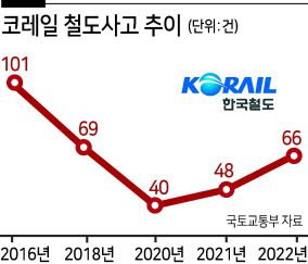 정부가 코레일에 이렇게 큰 과징금을 부과한 건 철도 안전사고 증가세가 심각한 수준이라고 판단하기 때문이다. 10년 전부터 감소하던 철도사고는 2020년 40건까지 내려갔으나 2021년 48건, 2022년 66건 등으로 다시 빠르게 늘고 있다. 무엇보다 최근 급증한 사고는 ‘단전’과 ‘탈선’ 등 유지보수가 제대로 이뤄지지 못한 데 따른 것이어서 관련 업무에 대한 독점권을 가지고 있는 코레일에 대한 비판이 커지는 분위기다.