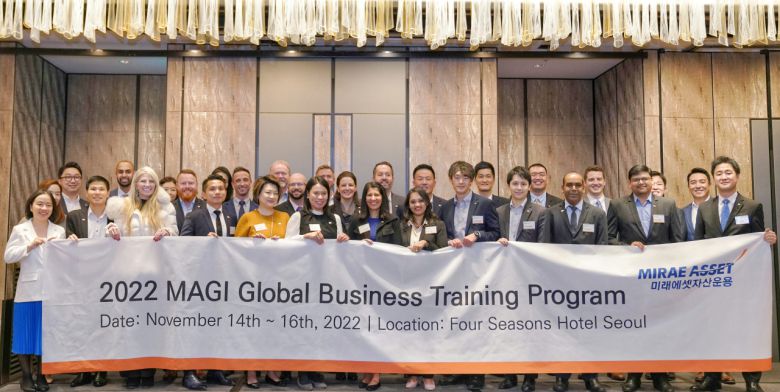 작년 11월 미래에셋자산운용 글로벌 네트워크 및 관리체계 강화를 위한 세미나 개최 후 참석자들이 기념사진을 찍고 있다. [미래에셋자산운용 제공] |
