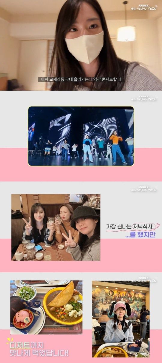 이날 한승연은 일본에서 식사를 하고 쇼핑을 즐기는가 하면 강지영, 허영지와 함께 유니버셜 스튜디오를 찾으며 일본 여행을 즐겼다. 특히 한승연은 해리포터 굿즈 코너에서 눈을 떼지 못하며 러블리한 매력을 발산했다.