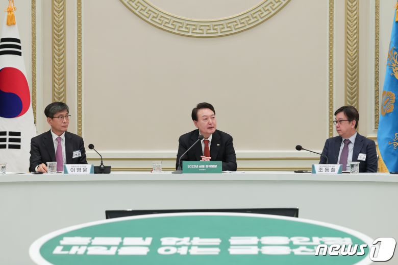 윤석열 대통령도 "직접 금융시장이 더 발전해야 한다"며 적극적으로 의견을 개진하는 등 금융 현안에 상당한 관심을 보인 것으로 전해졌다. 특히 최근 금융회사 최고경영자(CEO) 선임 절차를 두고 금융당국을 향한 '관치' 비판이 불거지는 상황에 대해선 "은행은 공공재적 성격이 있다"며 당국에 힘을 실어줬다.