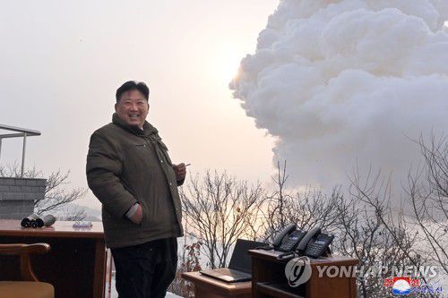 (평양 조선중앙통신=연합뉴스) 김정은 북한 국무위원장이 지난해 12월 15일 오전 서해위성발사장에서 대출력고체연료발동기 지상시험을 현지지도하는 모습. [국내에서만 사용가능. 재배포 금지. For Use Only in the Republic of Korea. No Redistribution] nkphoto@yna.co.kr