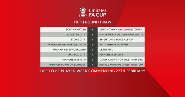 [인터풋볼] 하근수 기자= 잉글랜드 FA컵 5라운드(16강) 대진 결과가 나왔다.