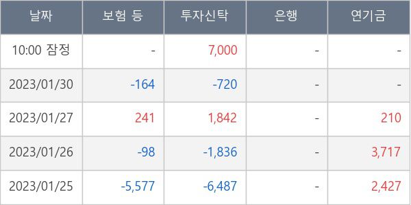 [표] 주요 기관별 순매매량 (단위 주)