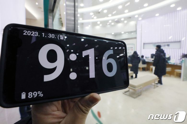 은행 영업 시작 시간이 기존 오전 9시30분에서 9시로 복원된 30일 서울의 한 은행 영업점으로 고객들이 들어서고 있다. 2023.1.30/뉴스1 ⓒ News1 민경석 기자 |