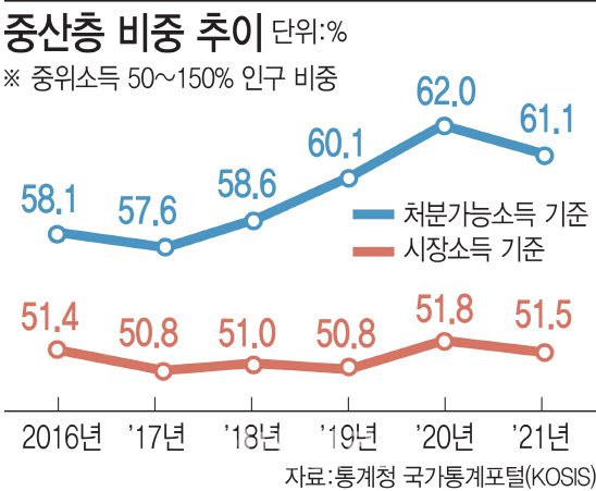 처분가능소득 기준 10명 중 6명이 ‘중산층’…10년새 6.1% ↑