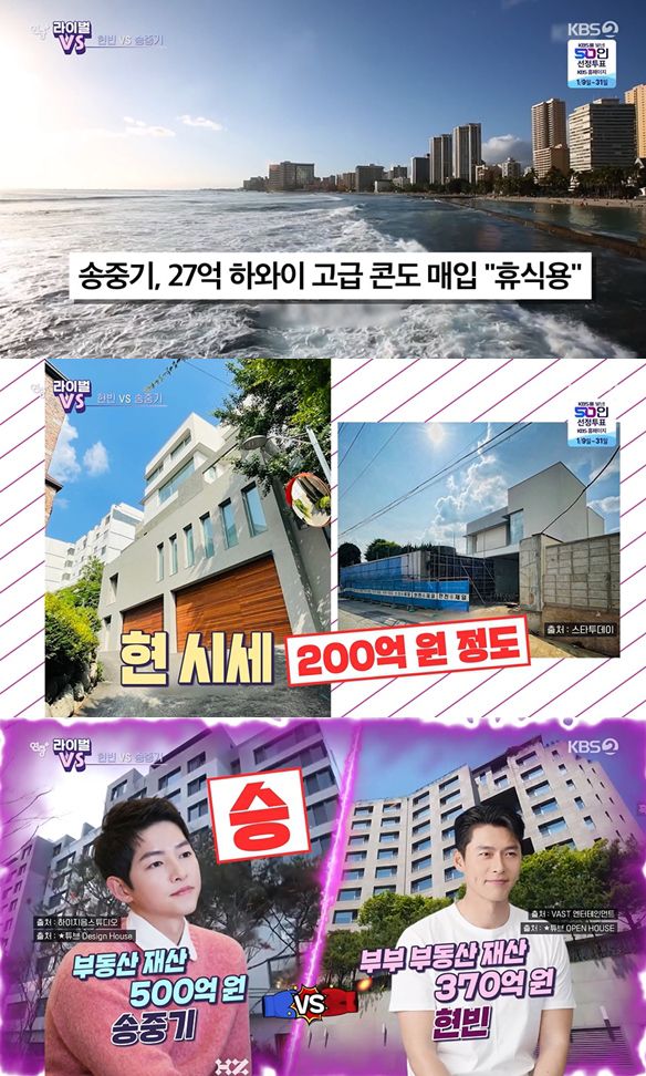 지난 13일 방송된 KBS 2TV '연중 플러스'에 따르면 송중기는 약 500억 원 가량의 부동산 자산을 보유하고 있다.