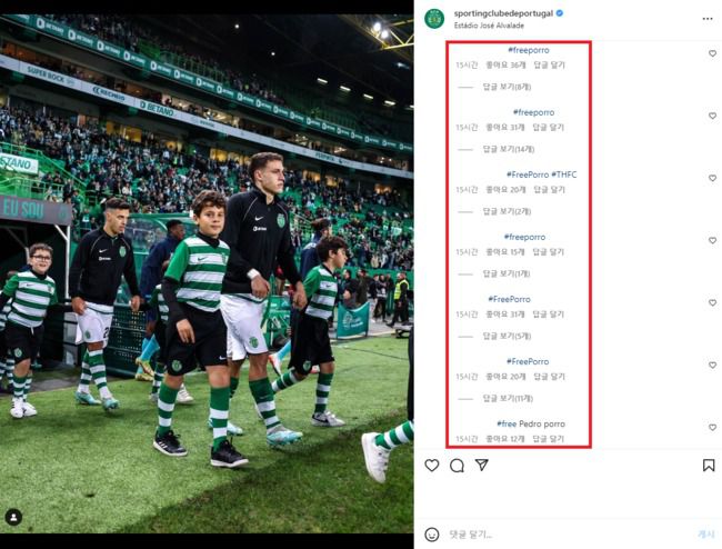 [인터풋볼] 하근수 기자= 토트넘 훗스퍼 팬들이 스포르팅 SNS를 테러하고 있다.