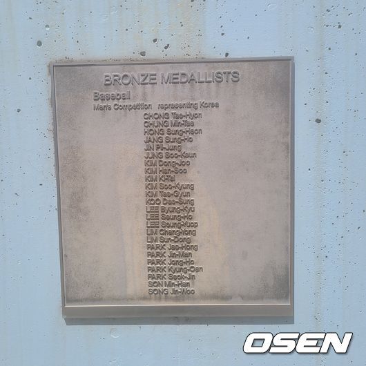 지난 31일 방문한 시드니 블랙타운 베이스볼센터에는 당시 영광이 동판을 통해 그대로 남아있었다. 두산이 훈련하는 메인구장 중앙 출입구 쪽 기둥에 동메달을 따낸 24명의 이름이 한 명씩 새겨져 있었다. 이승엽 감독을 비롯해 김한수 두산 수석코치, 박진만 삼성 감독, 김기태 KT 2군 감독, 이병규 삼성 수석코치 등의 이름이 반갑게 취재진을 맞이했다. 한국뿐만 아니라 금메달 미국, 은메달 쿠바 대표팀 명단도 동판으로 제작돼 각자 한 기둥씩 차지하고 있었다.