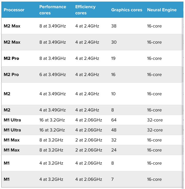 맥용 M 시리즈 칩과 관련해 애플의 출시 일정을 보면 맥북 에어 기본 버전, 13인치 맥북 프로, 기타 맥으로 구성된다. 애플은 기본 프로세서를 손봐서 더 상위 버전을 만든다. M2를 M1 프로 및 M1 맥스와 비교한 내용은 이 기사를 참고하면 된다.M 시리즈 칩의 최신 버전은 2022년 여름, WWDC 직후에 새로운 13인치 맥북 프로 및 맥북 에어와 함께 출시된 M2다. M2는 M1 맥을 대체하지만 999달러짜리 M1 맥북 에어와 같은 기본형 제품으로 M1 모델을 계속 유지할 가능성도 있다. 2023년 1월 애플은 14/16인치 맥북 프로와 맥 미니의 M2 프로, 14/16인치 맥북 프로와 M2 맥 미니의 M2 맥스를 출시했다.