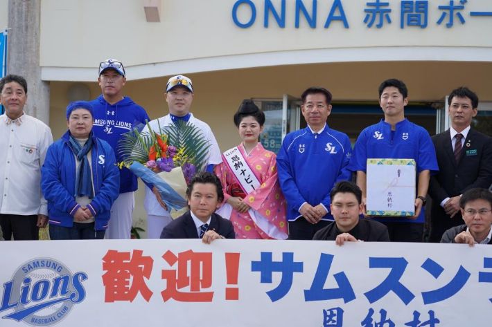 삼성은 1일 "오키나와 온나손 촌장을 비롯한 관계자 30여 명이 아카마구장을 찾아 현수막과 꽃다발 등을 준비해 환영회를 열었다"면서 "직접 가져온 지역 특산물을 선물로 전달했다"고 밝혔다. 박진만 감독과 이병규 수석 코치가 대표로 참석했다.