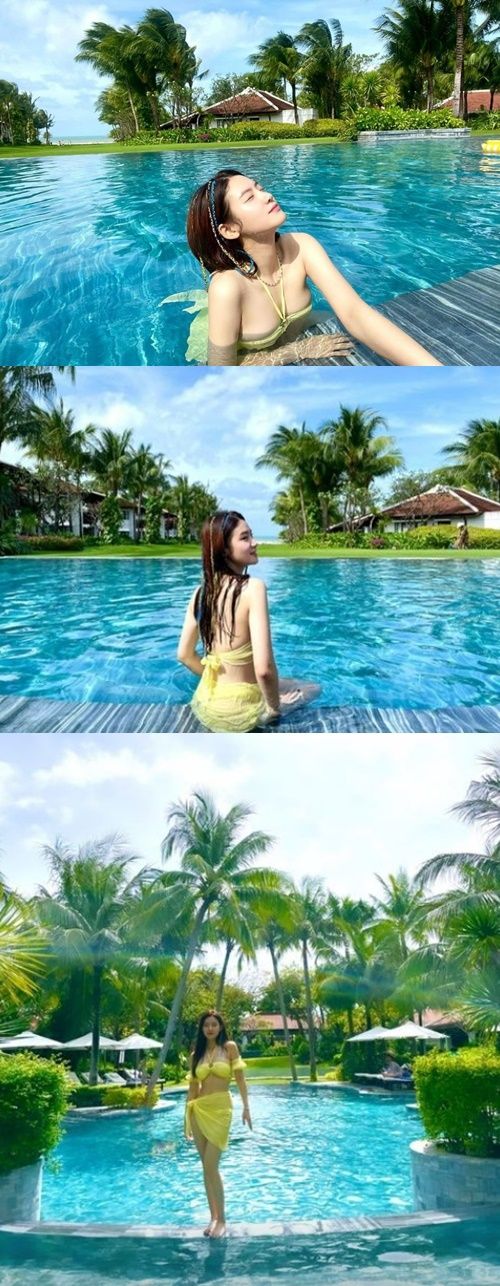 공개된 사진 속에는 수영장에서 여유를 즐기고 있는 박주현의 모습이 담겨있다.