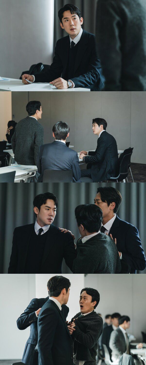 몇 번의 경고에도 안수영에 대한 이야기를 멈추지 않자 하상수는 급기야 멱살까지 잡고 동료를 몰아세운다. 동료를 바라보는 형형한 눈빛에서 그가 얼마나 화가 난 상태인지, 화를 참기 위해 노력하고 있는지 알 수 있다.