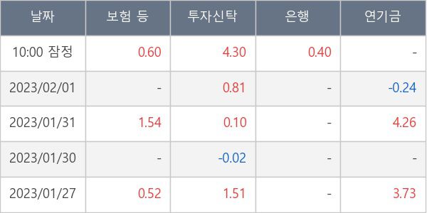 [표] 주요 기관별 순매매량 (단위 만주)