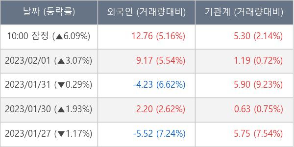[장중수급포착] 뉴프렉스, 외국인 12.76만 주 대량 순매수... 주가 +6.09%