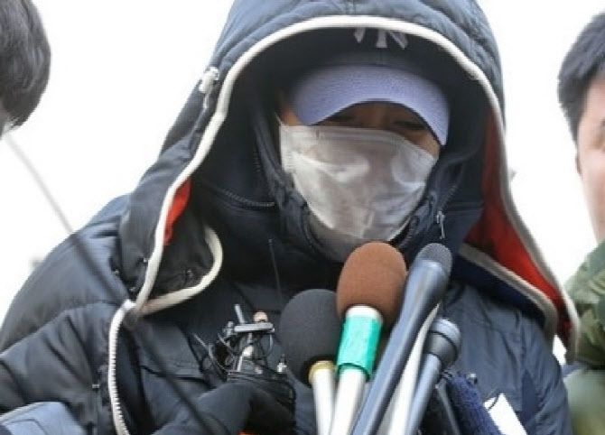 전주 일가족 존속살인 사건 범인 박모씨가 2013년 2월 7일 현장검증에 앞서 취재진 질문에 답을 하고 있다. (사진=뉴스1) |